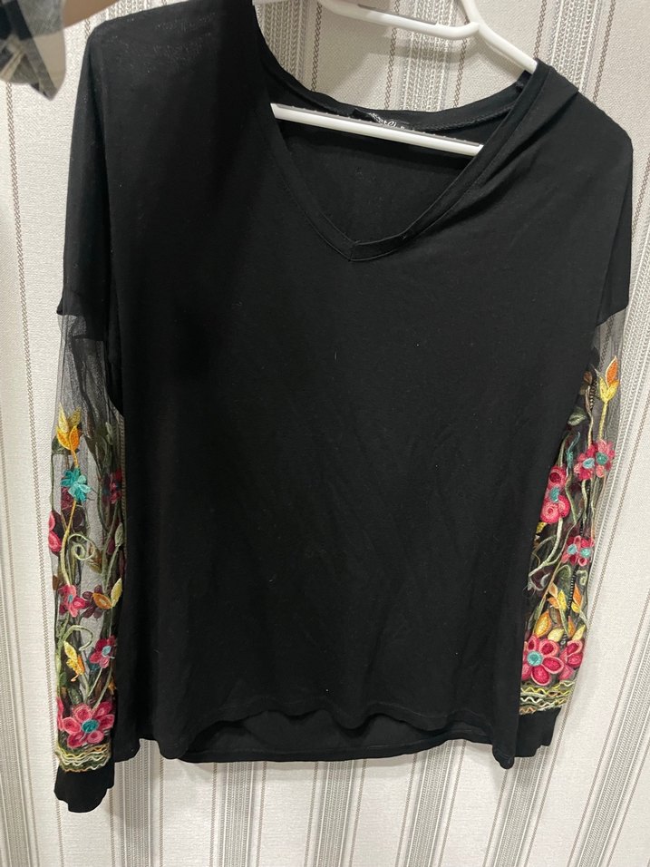 Nakışlı, çok renkli çiçek desenli, şeffaf kumaşlı uzun kollu bohem bluz. Yuvarlak yakalı, bol kesim ve fermuarlı detay içerir. Günlük kullanıma uygundur.