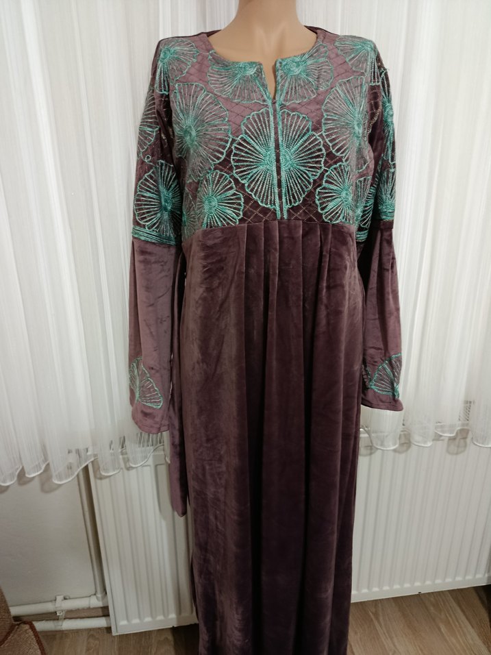 Nakışlı Bohem Uzun Kollu Kahverengi Elbise