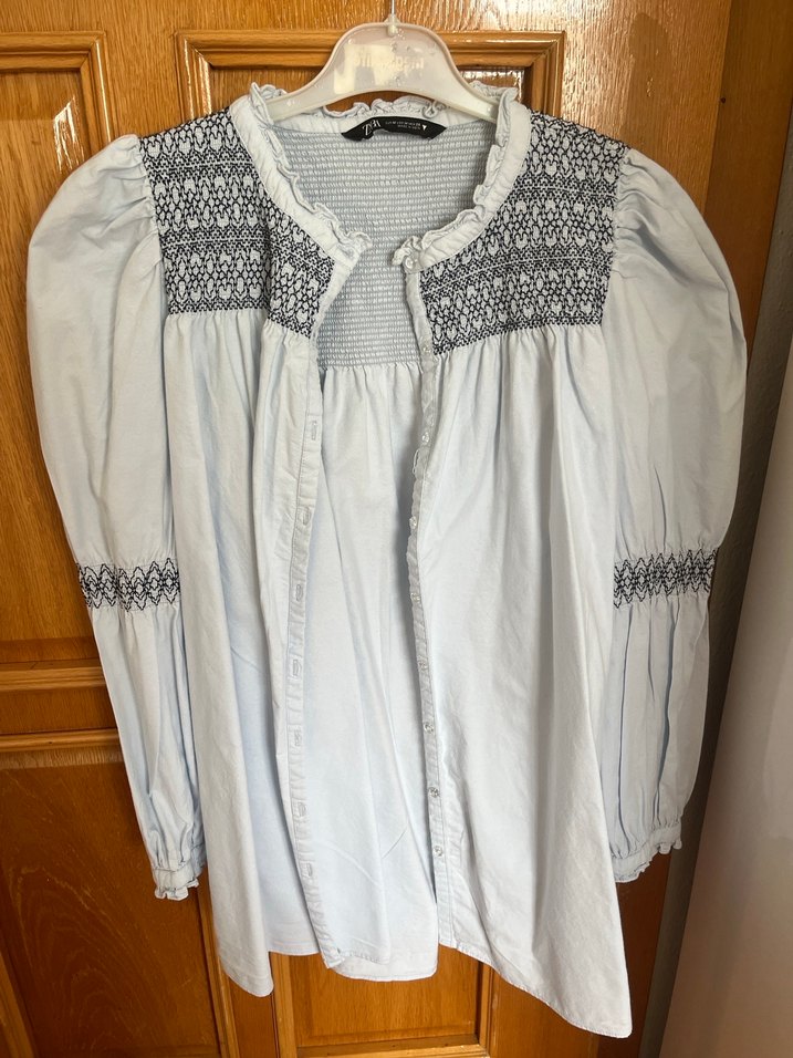 Yüksek yakalı, bol kesim beyaz keten gömlek, omuz ve kollarda gri nakış detaylıdır. Uzun kollu ve düğmeli, bohem tarzını yansıtır. Zara’dan alındı 2 kez giyildi giyilmedi ihtiyaç fazlası olduğu için satıyorum kolları vatkalı gibi duruyor kesimi ovirsize gibi ben L giymeme rağmen bana bol duruyordu