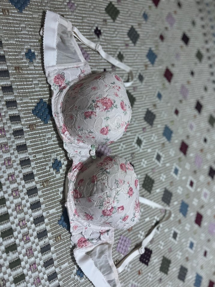 Nakışlı çiçek desenleriyle vintage bohem tarzda beyaz sütyen, normal uzunlukta ve yumuşak bir tasarıma sahiptir.