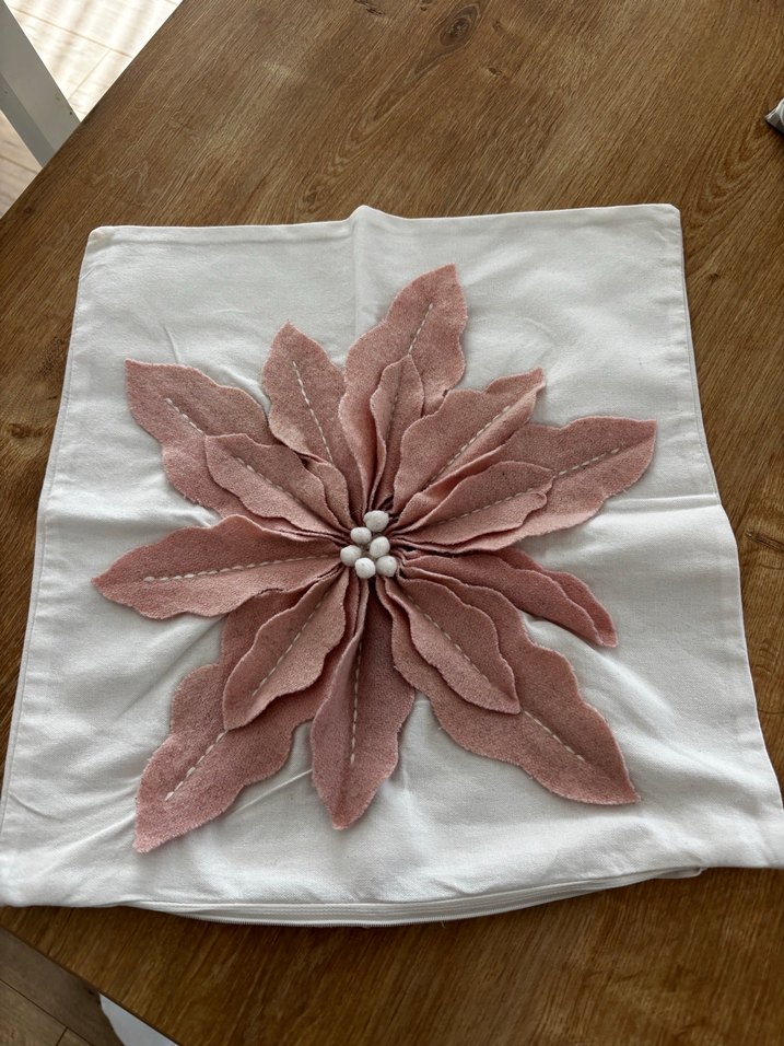 Beyaz yastık kılıfı, pastel pembe nakışlı çiçek deseniyle bohem tarzda. Yumuşak kumaş ve detaylı dikişler dekoratif görünüm sağlar.