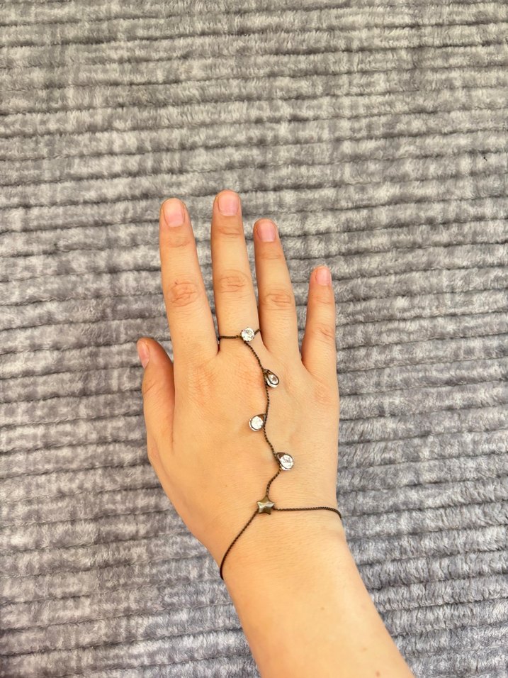 Nakışlı detaylara sahip boncuklu bej ve gri tonlarında, günlük kullanıma uygun bohem tarzda el zinciri. ✨ Rengin de solma var