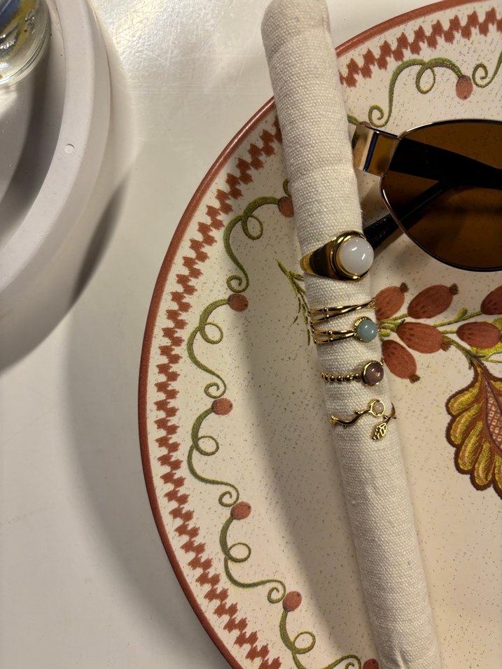 Nakışlı detaylara ve boncuklara sahip bohem tarzda, camel tonlarında kadın yüzük seti. Günlük kullanıma uygundur. ✨