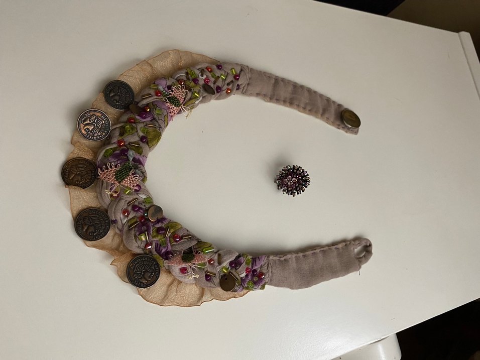 El yapımı , nakışlı ve boncuklu uzun kolye. Bohem tarzda, turistik yerden alındı, hiç kullanılmadı. Boyunda çok şık ve havalı duruşu vardır. Yüzük çapı 2 cm. Ancsk ayarlanabilir özelliğe sahip. Taşları pırıl pırıl. Eskilerden kalma. Özel gecelerde kullanmak için süper bir parça. Sorarak ve kararınızdan emin olunca alınız lütfen. İadeler ile uğraşmayalım. ♀️
