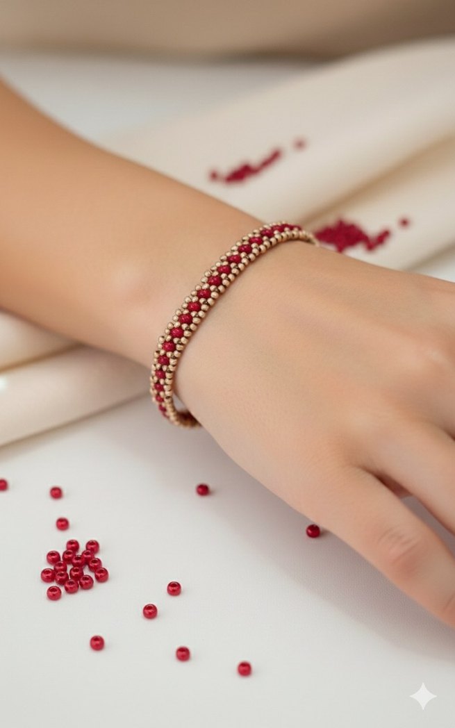 Nakışlı Boncuklu Kırmızı Bohem Bileklik