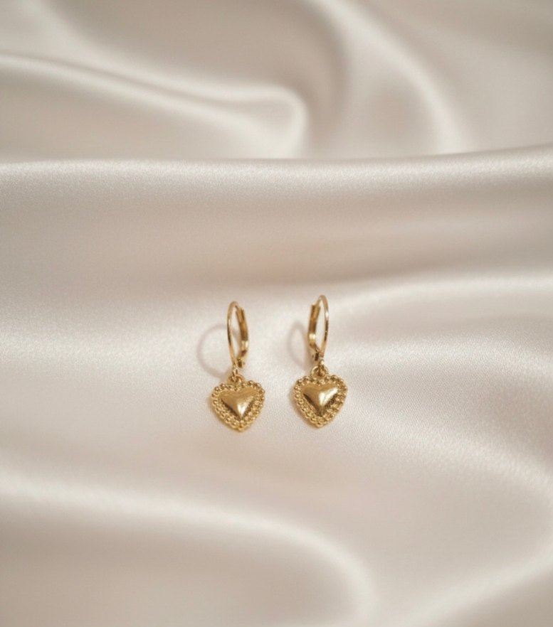 Parlak altın renginde, nakışlı boncuk detaylı, kısa uzunlukta modern klasik tasarımlı mini küpeler. Romantik akşamlar için ideal.