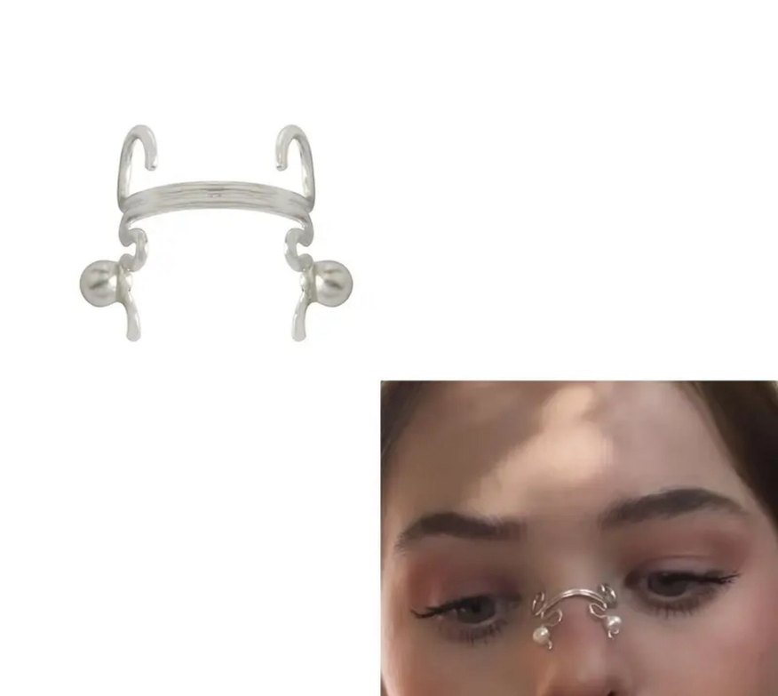 Nakışlı ve boncuk detaylı gri beyaz minimalist burun piercing. Midi uzunlukta, günlük kullanım ve avant-garde tarz için uygundur. ✨
