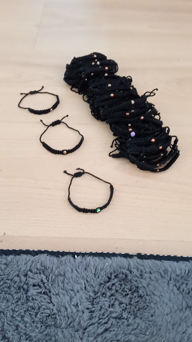 Nakışlı detaylara sahip siyah boncuklu bileklik, minimalist goth ve bohem tarzlar için uygun. Ayarlanabilir ve şık görünüyor.