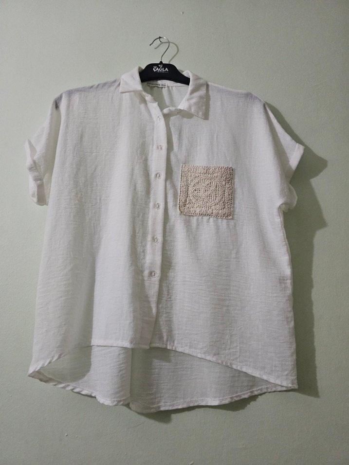 Nakışlı Cepli Keten Kadın Gömlek