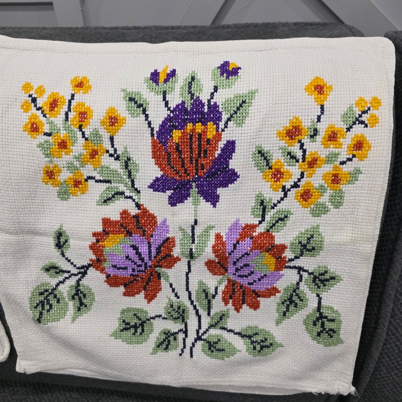 Nakışlı Çiçek Desenli Etamin Kırlent