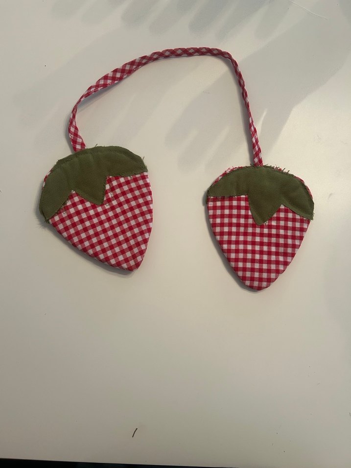 Nakışlı, renkli kırmızı kareli çilek desenli, saplı fırın eldiveni, mutfağa şıklık katıyor .