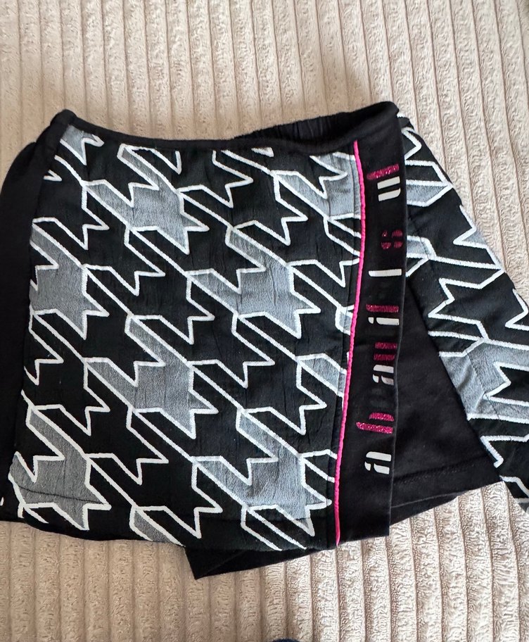Nakışlı desenlere sahip, gri siyah renklerde, bol kesim şort mini etek. Beli lastikli çok şık. 8-10 yaş