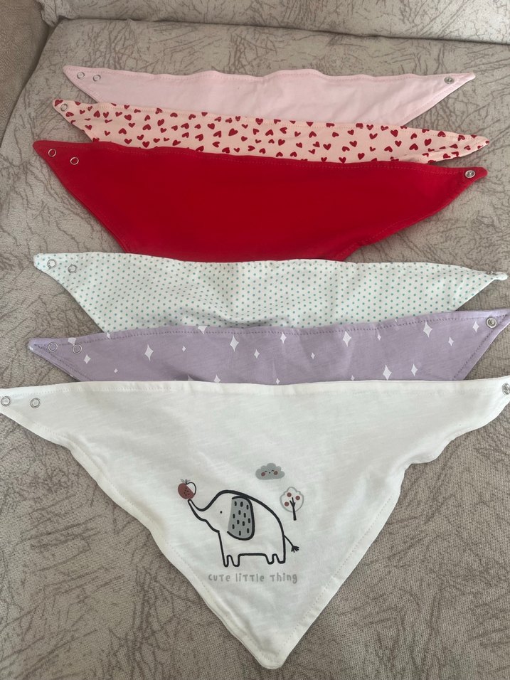 Nakışlı desenlere sahip çok renkli bebek önlükleri, pastel tonlarda ve kolay kapanan çıtçıtlı. Yumuşak kumaş bebekler için rahatlık sağlar.