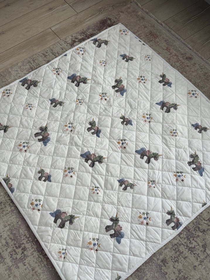 Nakışlı çok renkli desenlere sahip, gri zeminli çocuk halısı . Yumuşak ve rahat dokusuyla çocuklar için uygundur. Saklama torbası ile birlikte .