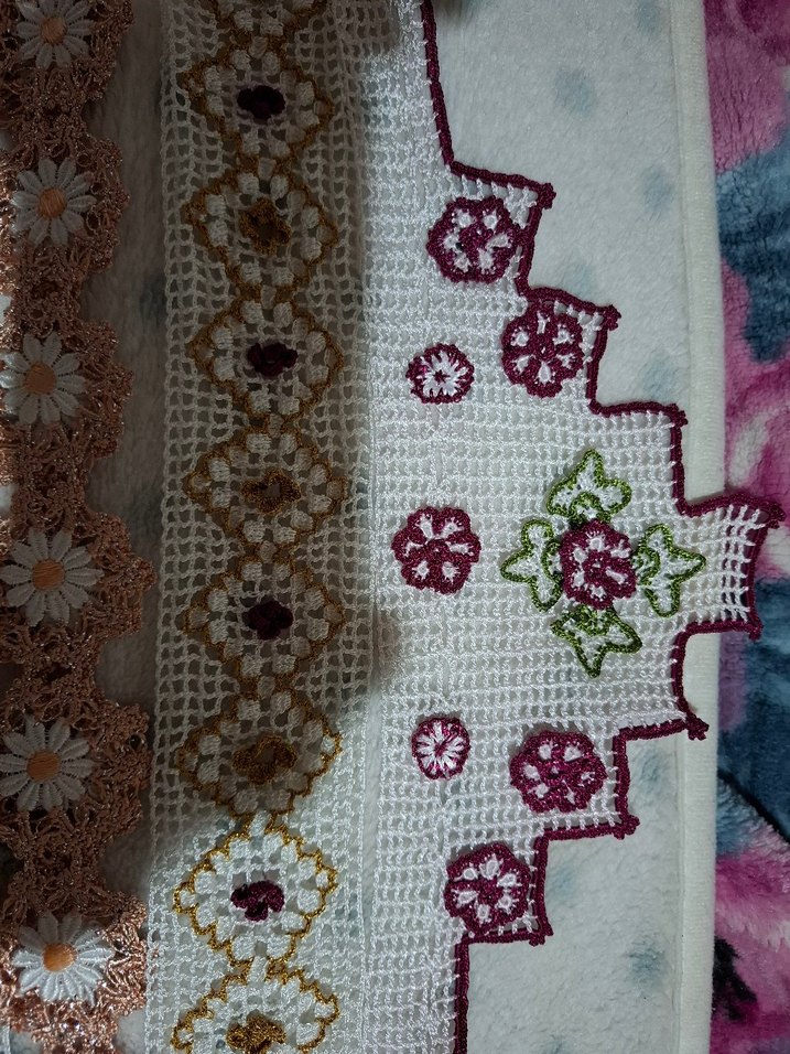 tamamen el iişidir danellerimiz Bu el yüzhavlusu, geleneksel tarzda nakışlı çiçek desenlerine ve ince tığ işi detaylarına sahiptir. Çok renkli ve açık tonlardadır. toplu fiyattır