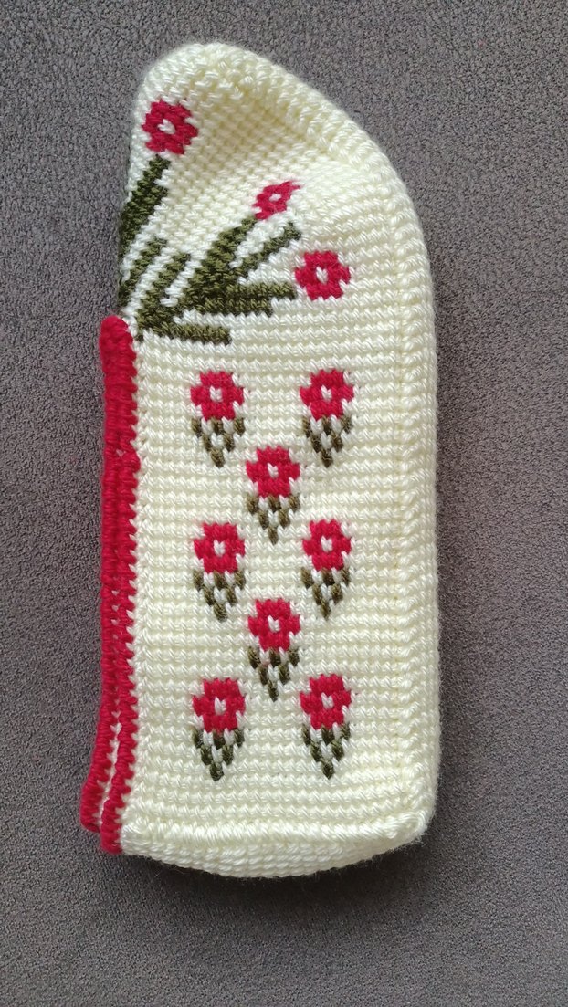 Nakışlı çiçek desenli, çok renkli ve açık zeminli fırın eldiveni. Dokulu örgü yapısıyla koruma sağlar.