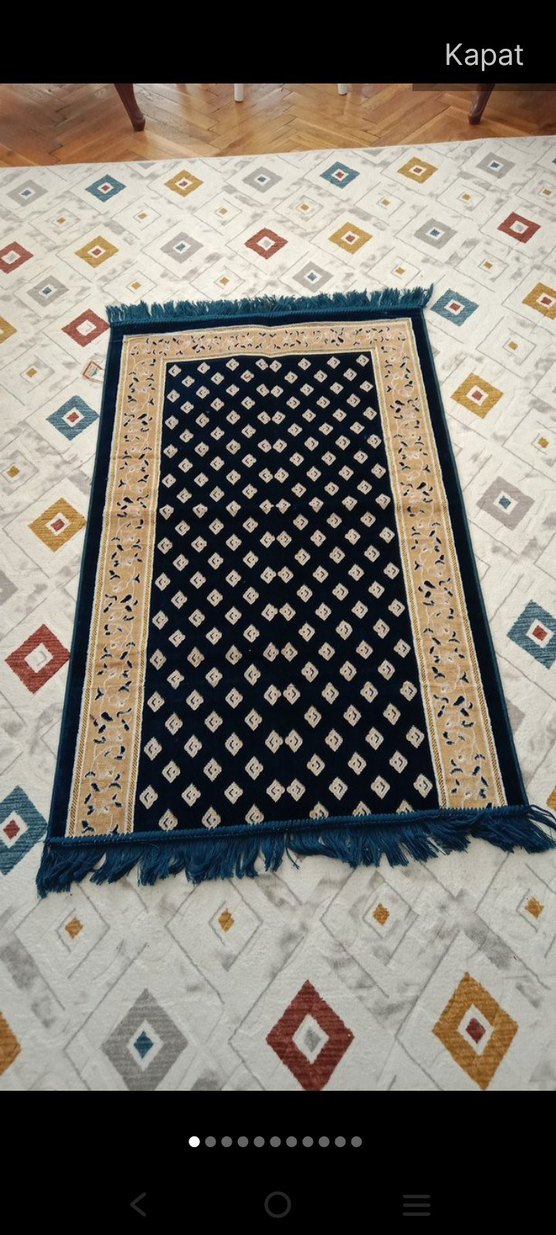Nakışlı desenli, koyu çok renkli tonlarda, püsküllü kenarlara sahip geleneksel halı. Klasik tasarımı zengin renklerle birleştirir.