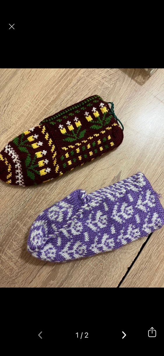 Nakışlı desenlere sahip çok renkli kadın örgü ev terlikleri, günlük rahatlık için düz tabanlıdır. Rahat ve bohem tarzı için uygundur. İkili 250