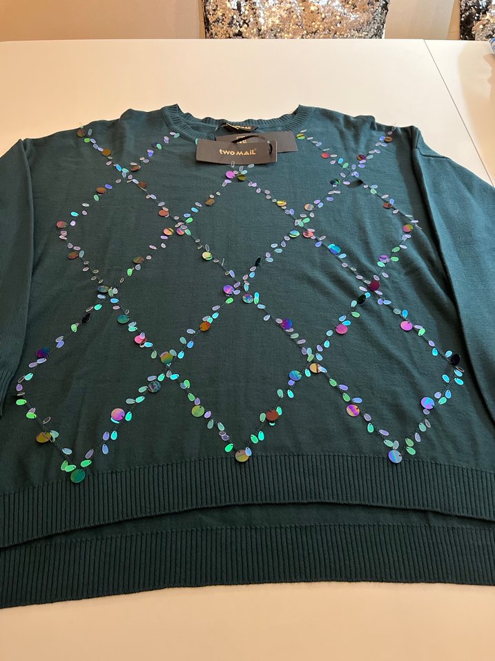 Kadınlar için yuvarlak yakalı, uzun kollu ve bol kesim triko sweatshirt. Çok renkli nakış desenleriyle parti ve sokak modasına uygun şık bir parça.