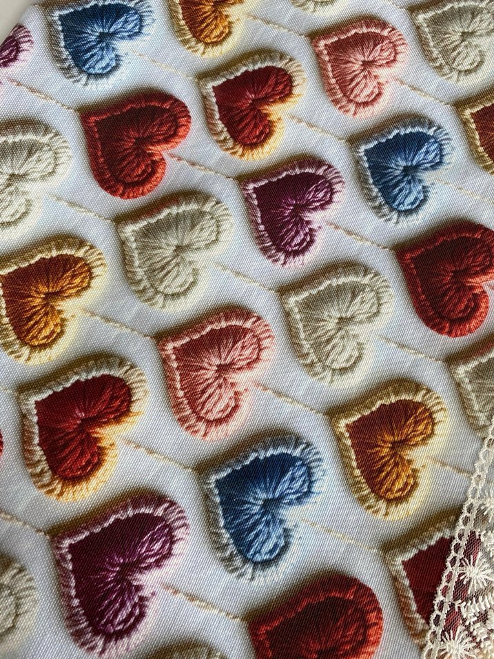 Nakışlı Çok Renkli Kalp Desenli masa örtüsü