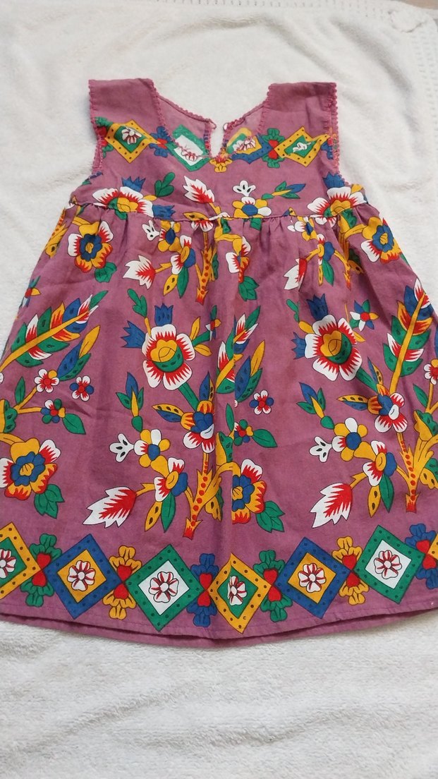 Çok renkli nakışlı, kolsuz bohem kız çocuk elbisesi. Rahat kesim, fırfırlı ve tekne yaka detaylı, yumuşak dokulu kumaştan.