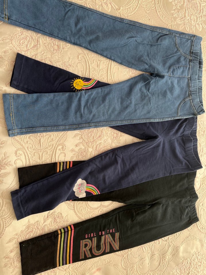 Elastik bel ve nakış detaylı, çok renkli kız çocuk taytları. Denim görünümlü kumaştan, fit kesim ve 'RUN' yazısı bulunur.