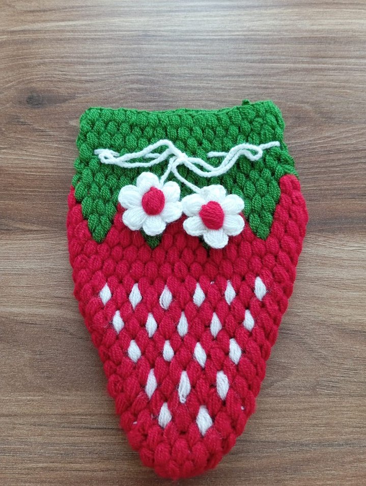Nakışlı çiçek detaylı, dokulu örme tasarımlı, çilek şeklinde çok renkli lif