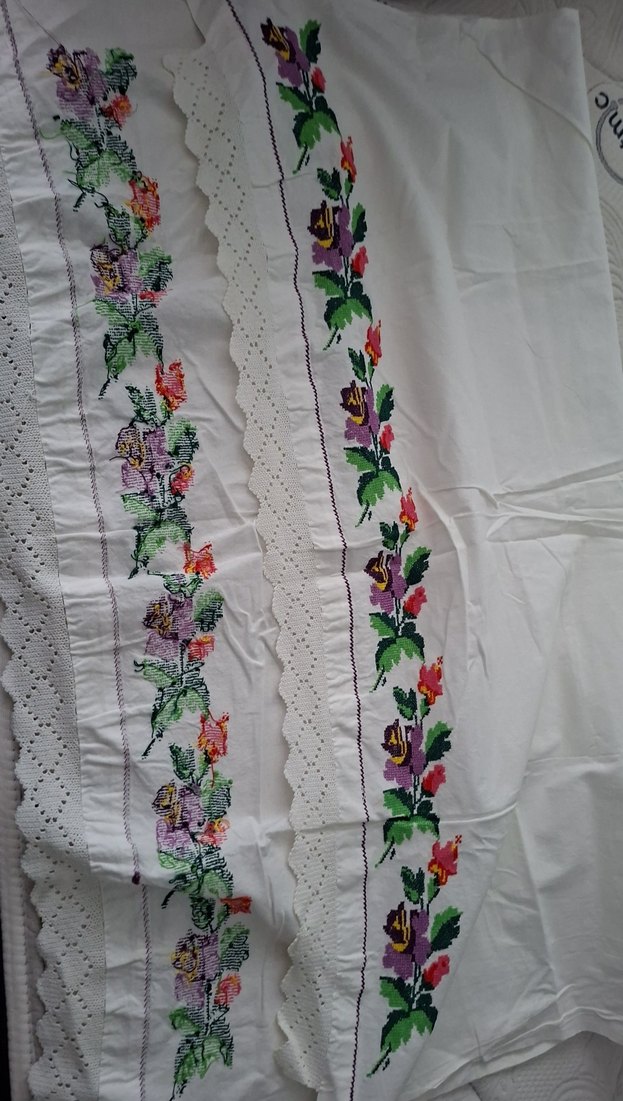 Beyaz zemin üzerine işlenmiş çok renkli çiçek desenleriyle geleneksel tarzda masa örtüsü. Masanıza zarif bir dokunuş katıyor.
