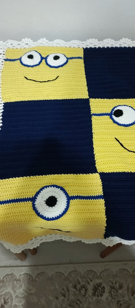 Bu çok renkli örgü çocuk battaniyesi, nakışlı desenlerle yumuşak ve şık bir kullanım sunar. Sünger Bob bebek battaniyesi 90'a 9 0 sipariş alıyorum