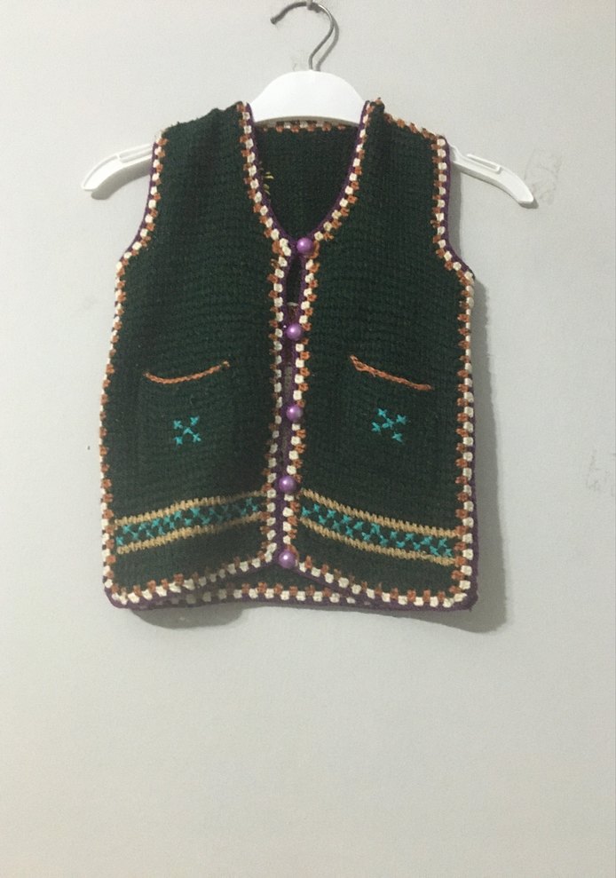 Nakışlı Çok Renkli Örgü Kız Yeleği