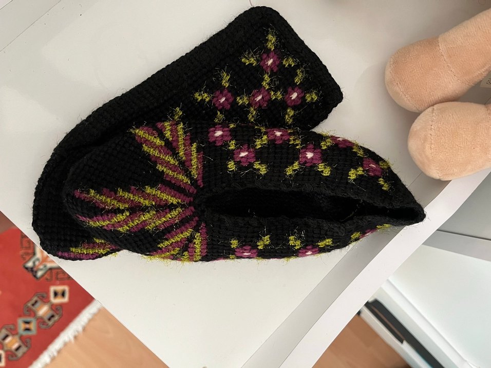 Nakışlı, koyu renkli ve çok renkli çiçek desenlerine sahip ayakları sıcak tutar.