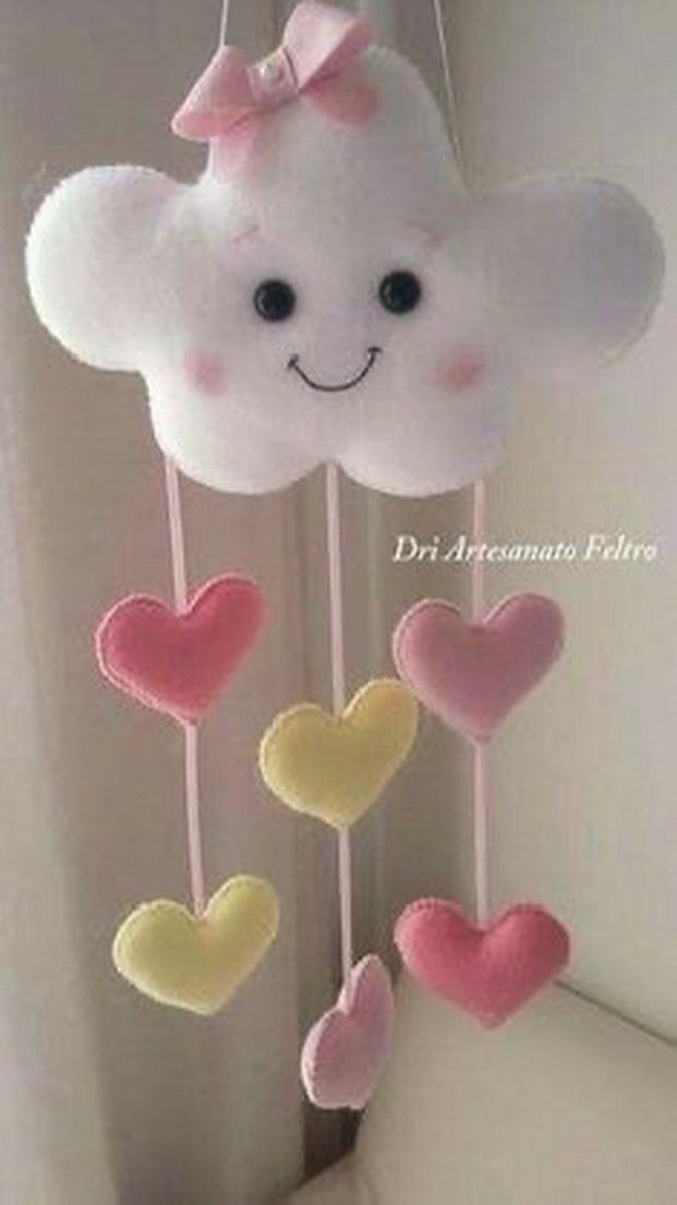 Kişiye özel tasarım yapılır istediğiniz renklere göre yapılır bebek çocuk kapı süsü Pamuklu, nakışlı çok renkli pastel bulut figürü ve asılı peluş kalplerle bebek odası için yumuşak ve şirin bir süs.