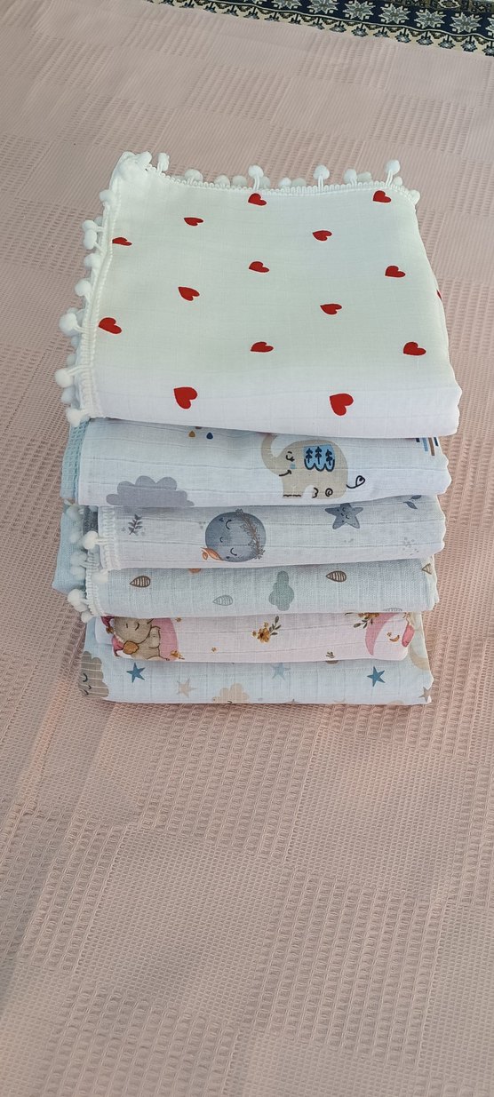Pamuklu çocuk battaniyesi, nakışlı desenlerle canlı pastel renklerde, yumuşak ve rahat dokunuş sağlar. boyutları 1 metre eni de boyu da hepsi organik bebek kumaslarindan yapılmıştır