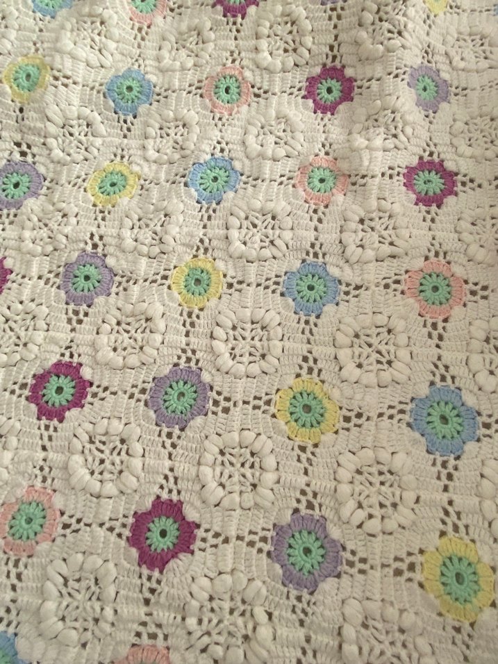 Yumuşak dokulu, çok renkli pastel nakışlı desenli battaniye, ortama sıcaklık katmak için uygun. ️
