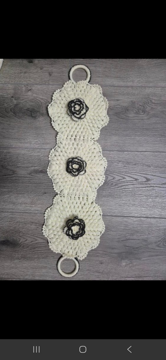 Gri nakışlı çiçek detaylı beyaz dantel broş, rahat bohem tarzda günlük kullanıma uygun.
