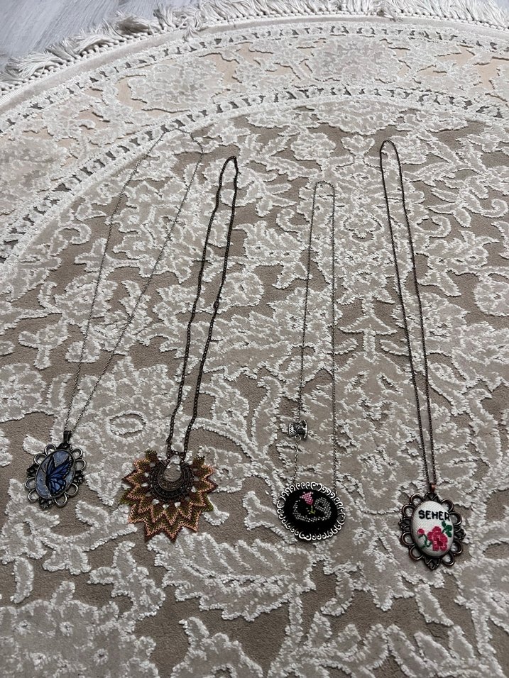 Günlük kullanım için vintage bohem tarzda, nakışlı dantel detaylı uzun gri kolyeler. Adet fiyatları 120 tl dir.