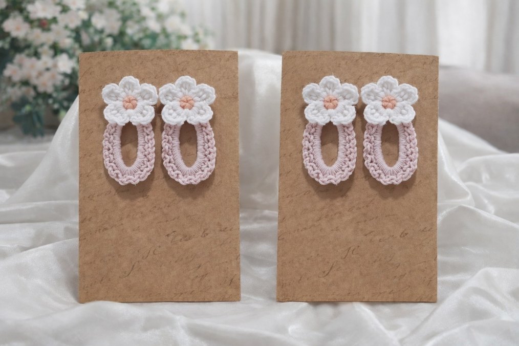 Pastel bej tonlarda, nakışlı dantel çiçek detaylı, bohem tarzda çocuk saç tokaları .