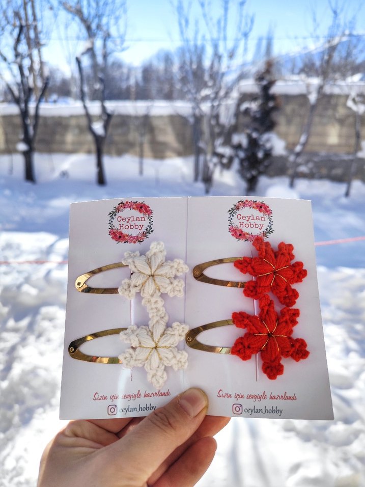 Beyaz ve kırmızı renklerde nakışlı dantel çiçek desenli, bohem tarzda çocuk saç tokası seti. Saçlara sade ve renkli bir dokunuş sağlar.