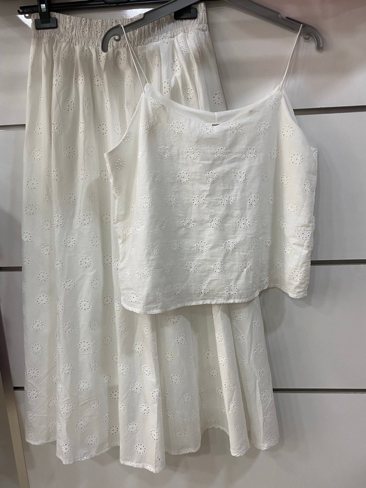 Nakışlı Dantel Detaylı Beyaz İKİLİ TAKIM