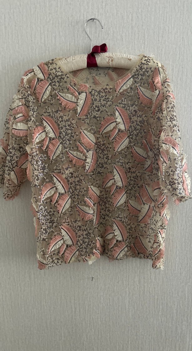Zara Nakışlı desenler ve dantel detaylarıyla, kısa kollu, yuvarlak yakalı, bol kesim pastel bej