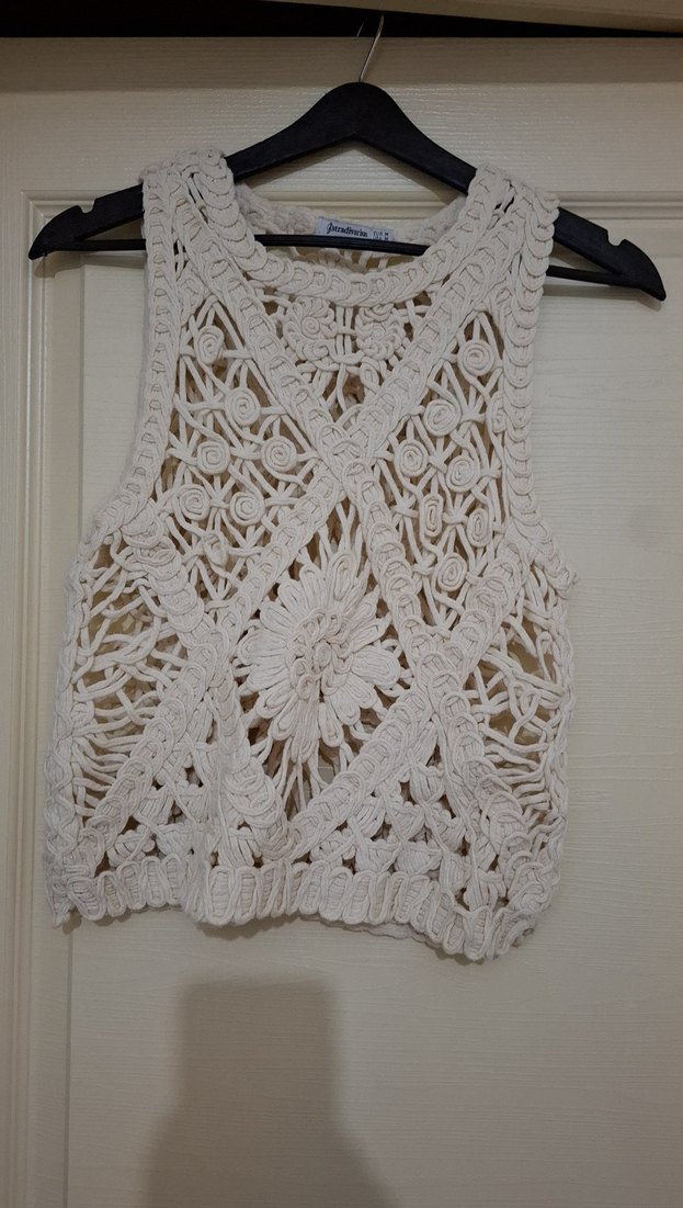 Kısa boy, ince örme yelek, dantel ve nakış detaylarıyla bohem tarzını yansıtır. Kolsuz ve yuvarlak yakalıdır, günlük kullanıma uygundur. Kalıbı geniştir.