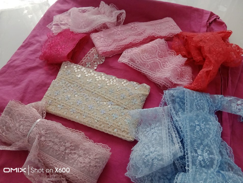 Hafif pembe renkli, nakışlı desenlere sahip bohem tarzda dantel kız aksesuarları. Retro ve hippie stillerine uygun, K600 kodlu ürün.