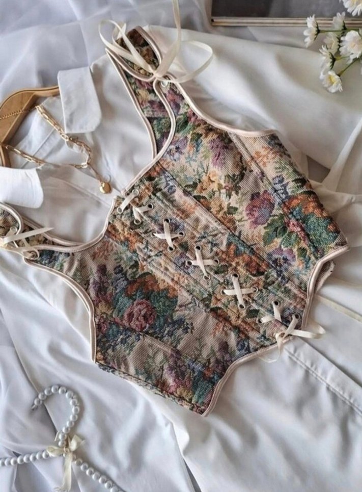 Fitted kesim bohem büstiyer, halter yaka ve askılı tasarımla pastel nakışlı tekstil ve dantel detaylara sahip, günlük kullanım için uygun. Hiç kullanılmadı karton etiketi yoktur