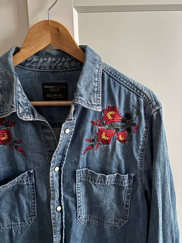 Nakışlı Denim Gömlek