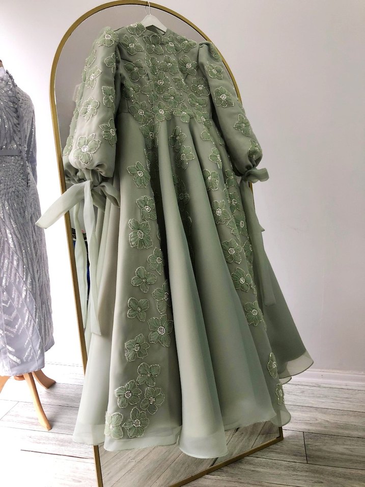 Nakışlı Drapeli Uzun Kollu Kadın Elbise