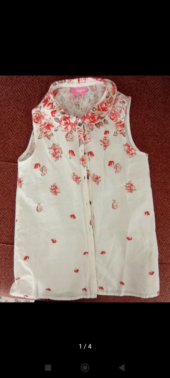 Nakışlı çiçek desenli, düğmeli ön kapamalı, beyaz ve kolsuz kız çocuk yeleği. Straplez yakalı, bohem tarzda ve vücuda oturan kesimde.