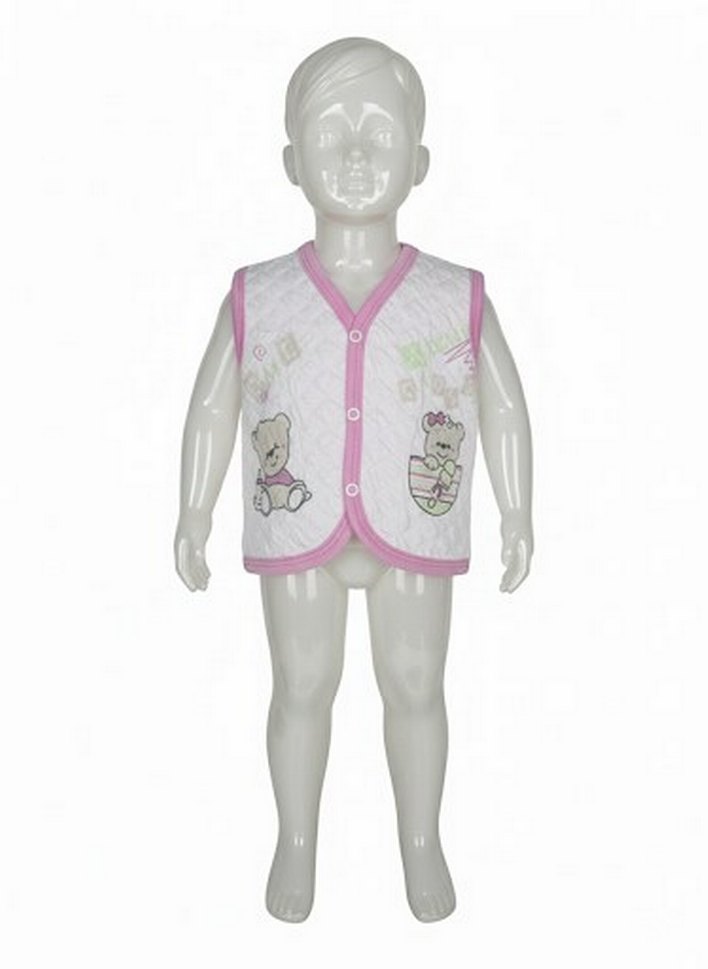Düğmeli, V yakalı, nakışlı beyaz kız çocuk yeleği. Yumuşak ve sıcak kumaştan, bol kesim, pastel renklerde desenlere sahip.
