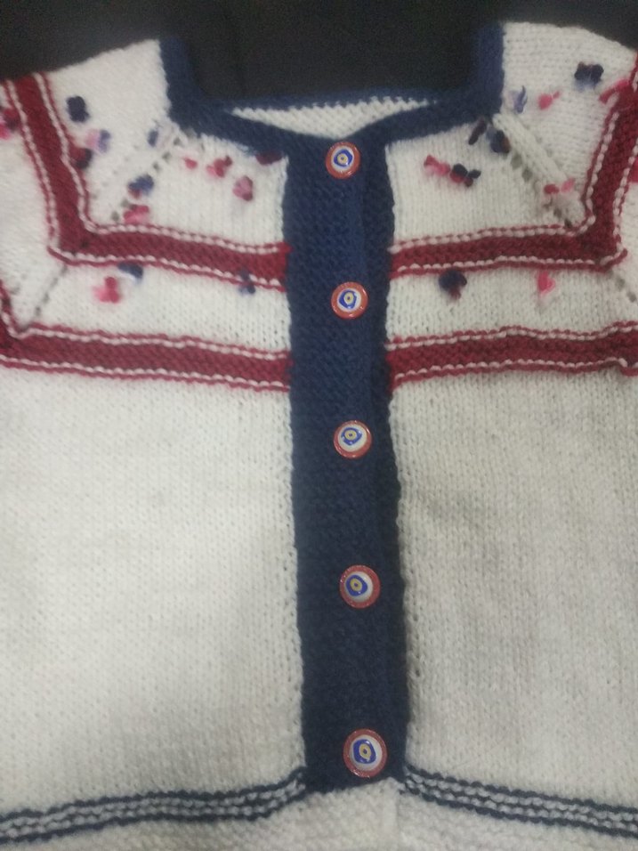Uzun kollu, düğmeli ve nakışlı detaylara sahip bohem tarzda, beyaz ve gri renkli kız hırkası.