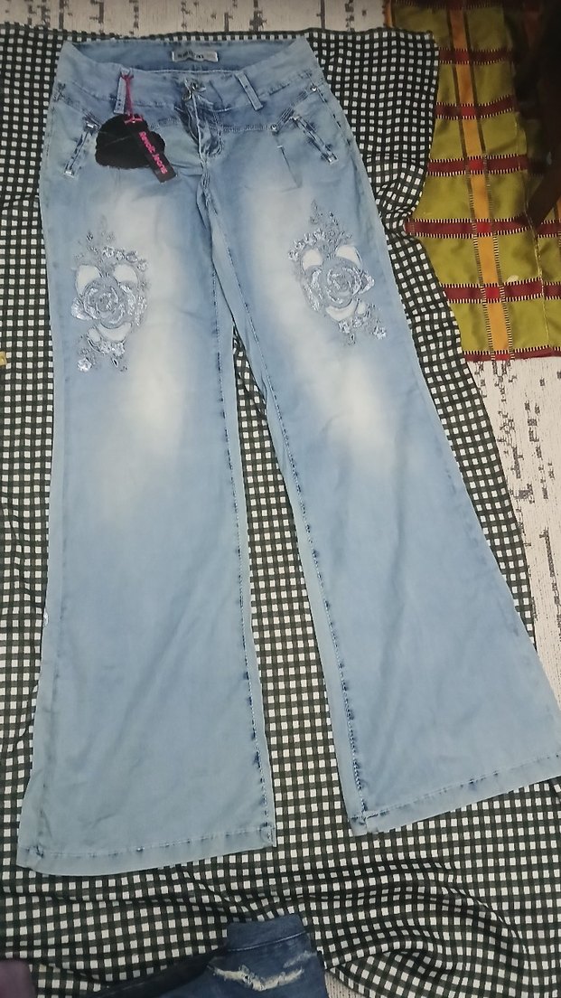 Nakışlı Düğmeli Gri Mavi Kadın Kot Pantolon ihrac fazlasi