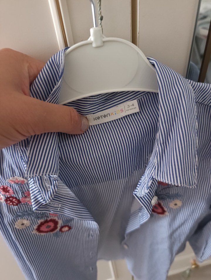 Mavi renkli, kısa kollu ve düğmeli çocuk gömleği. Notlu yaka ve nakış detaylarıyla günlük kullanıma uygun, rahat kesim.